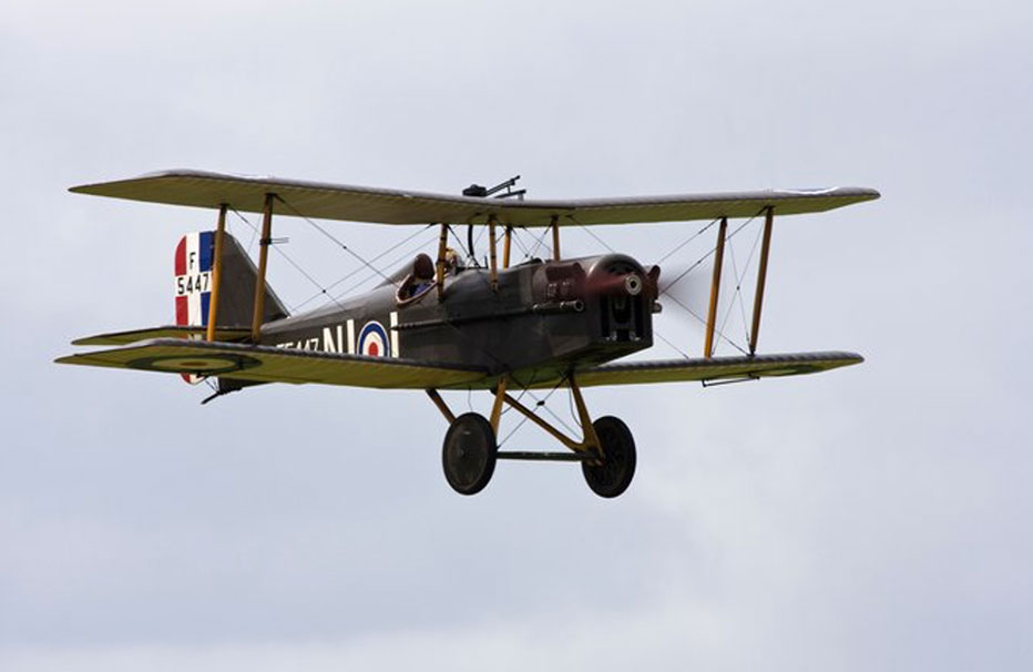The photo is of a BE2c, which appeared on the continent in early 1915, and was used for reconnaissance, artillery spotting, and as a (very) light bomber. The BE2’s performance was lackluster compared to newer aircraft, and while its inherent stability made it easy to fly, it also meant the aircraft was relatively unmaneuverable. The BE2 was outclassed by the Fokker Eindecker with its single forward-firing machine gun, and even more so by the early-model Albatrosses and Halberstadts. As a result, some British pilots christened their BE2s as “Fokker Fodder.”